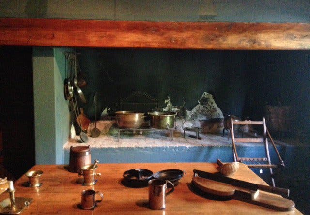 Im Esszimmer fällt auf, was sich in den weiteren Zimmern fortsetzen wird: kahle, weiße Wände. Spärliche Einrichtung. Schnörkellose, schlichte Möbel. Dadurch wirkt das Haus sehr primitiv, fast schon kalt. Neben dem Esszimmer können wir zwei Schlafzimmer und die Küche besichtigen. Spannend wird es, wenn die Einrichtung mit all ihren Details in Ruhe besichtigt wird. Eine Werkbank mit Werkzeug erzählt von handwerklichen Arbeiten. Die offene Herdstelle in der Küche steht zur Zubereitung von Speisen bereit. Und was sich in den Holztruhen verbirgt, bestimmt jeder Besucher selbst – vielleicht Stoffe, Decken oder Bücher?