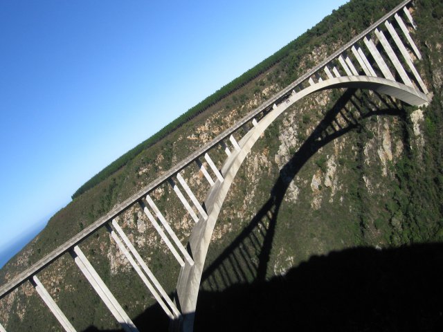 Etwa 550 Kilometern östlich, entlang der N2, zwischen dem beliebten Küstenort Plettenberg Bay und dem Tsitsikamma National Park thront sie – die Bloukrans Bridge. Mit 216 Metern ist sie die unangefochtene Königin unter den Brückenbauten Afrikas.