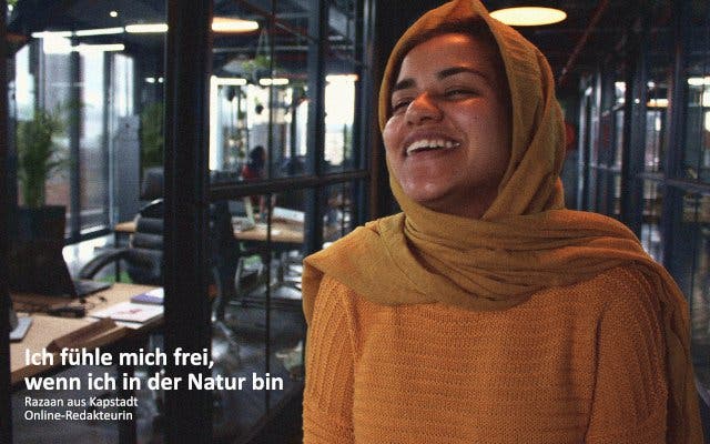 Onlineredakteurin Razaan aus Kapstadt beschreibt die Frau von heute als zuversichtlich, repräsentativ, unabhängig und stark. Die Zukunft sieht sie deswegen auch ganz klar weiblich.