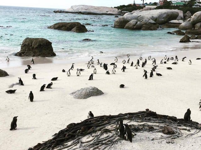 Samstagmorgen starteten wir dann vom Hostel aus zum ersten Stop Muizenberg. Viele von euch kennen sicherlich die Bilder von den bunten Strandhäusern aus Holz, für die der Strand von Muizenberg bekannt ist. Die Häuser wurden zur Zeit der Apartheit als Umkleidekabinen für reiche Weiße benutzt - heute sind sie eines der meist fotografierten Spots in Kapstadt. Für jeden der gerne surft ist dieser Strand ein Must-Do! Die Wellen brechen erst recht spät, was das Surfen vor allem für Anfänger besonders angenehm gestaltet. Nach einer kurzen Pause ging es dann weiter zum Boulders Beach in Simons Town, wo die Pinguine leben. Der Eintritt zum Boulders Beach beträgt für Erwachsene normalerweise R70, war für uns aber in der Tour mitinbegriffen. Ich kann diesen Strand nur jedem Tierliebhaber ans Herz legen! Insgesamt eine Stunde verbrachten wir dort und insgesamt eine Stunde konnte ich nicht aufhören zu grinsen. Pinguine sind wirklich die süßesten, bezauberndsten Tiere die ich je gesehen habe.