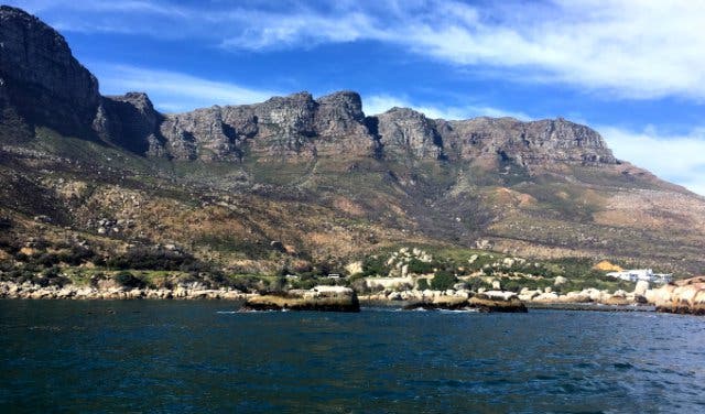 Wir fahren ein Stück Weiter. Kleine schwarze Punkte schwimmen auf dem Wasser. Wir fahren näher ran. Es sind Pinguine. Natürlich kann man sich die Pinguine auch am Boulders Beach angucken. Aber so, im offenen Meer ist es doch spektakulärer. Wir nehmen wieder Tempo auf. Auf unseren Rodeo-Sitzen reiten wir die Wellen. Den Tafelberg im Rücken, vor uns das weite Meer. Die Kulisse ist atemberaubend. Die Sonne scheint und es ist gar nicht mal so kalt. Es ist einfach wunderbar.