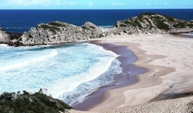 Am nächsten Morgen bin ich gespannt wie ein Flitzebogen auf den Ausblick. Und ich werde nicht enttäuscht. Sofort renne ich raus. Die Luft ist genauso frisch wie in Victoria Bay. Der Ausblick atemberaubend. Innerlich schreie ich „juhu“. Aber ich bringe keinen Ton heraus. Ich stehe auf der Veranda und versinke in meinen Gedanken, aus denen ich jedoch herausgerissen werde, als mich Matthew, der Besitzer der Lodge, fragt ob ich etwas frühstücken möchte. „Absolut“ kommt es mit einer rauen Stimme aus mir heraus. Nach dem gesundenen Frühstück mit Obst und Joghurt bin ich eigentlich schon zum Aufbruch in Richtung Natures Valley bereit. Ich habe jedoch nicht bedacht, dass der Mzansi Bus Mittwochs nicht in diese Richtung fährt. Hoppla. Nagut, dann bleibe ich noch eine weitere Nacht – das ist ja auch das schöne auf Reisen. Die Zeit bestimme ich. Den Tag verbringe ich mit einer Wanderung auf dem Robberg. Ich muss gestehen, dass Wandern nicht meine größte Leidenschaft ist. Es ist anstrengend. Ich schwitze. Aber es lohnt sich. Ich werde jedes Mal mit fabelhaften Aussichten, wunderbarer Natur und diesmal auch mit einem fast menschenleeren Strand belohnt. Dafür nehme ich dann auch die Anstrengung in Kauf.