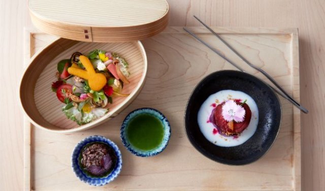 Kaiseki ist ein traditionelles japanisches mehrgängiges Abendessen. Der Begriff bezieht sich auch auf die Sammlung von Fähigkeiten und Techniken, die die Zubereitung solcher Mahlzeiten ermöglichen, und entspricht der westlichen Haute Cuisine. Die Kaiseki-Menüs bestehen aus 7 – 10 verschiedenen Gängen und sind der Inbegriff der geschmacklichen und ästhetischen Perfektion. Momiji bleibt dem Fluss des traditionellen Kaiseki-Menüs treu und umfasst lokale und saisonale Zutaten (von denen einige von Momiji-Köchen aus den beiden hauseigenen Beeten geerntet werden).