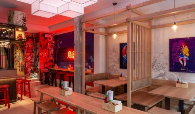 Hier können also schnelle Snacks, Brunch oder leichte after Work Gerichte genossen werden wie etwa Bento- und Sando-Boxen, Tempura Temaki (handgerolltes Sushi), gedämpfte Hirata-Brötchen, Yakitori (Fleischspieß), Gyoza (Knödel), Ramen und Reisschalen. Klar steht auch Sake und japanische Bier auf der Speisekarte. Weiter gehts, in die zweite Etage. Ins Momiji.