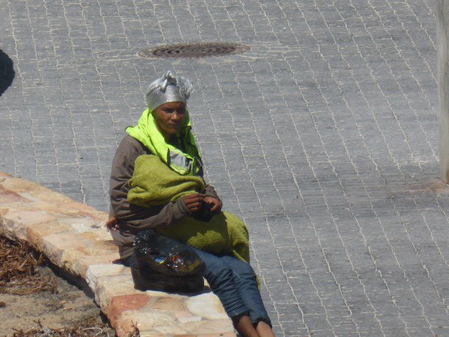 Eine junge Frau sitzt mit ihrem Baby mitten auf dem Parkplatz. Seit sechs Stunden trotzt sie Sonne und Wind und beobachtet die geparkten Autos. Ihre grüne Weste hat sie zum Schutz vor den starken Windböen über das Gesicht ihrer Tochter gelegt, die friedlich auf ihrem Arm schläft. In ihrer Jackentausche versteckt sich ein kleiner Münzhaufen. Gerade genug, um ihre Handflächen zu verdecken. „Heute ist ein schlechter Tag“, erklärt sie. Es sei zu windig, da kämen weniger Menschen zum Strand, die sie dafür bezahlen würden auf ihre geparkten Autos aufzupassen. Dennoch steht sie fast jeden Tag hier. Ganz egal, ob der Parkplatz fast leer ist oder vor lauter Autos platzt wenn ich zu meinem Auto komme, ist sie da, schenkt mir ein Lächeln, wünscht mir einen schönen Tag und winkt mich sicher aus meiner Parklücke heraus. Als Dank bekommt sie mein Wechselgeld: 5 Rand – 35 Cent. Von vielen anderen bekommt sie gar nichts, nichteinmal ein Dankeschön.