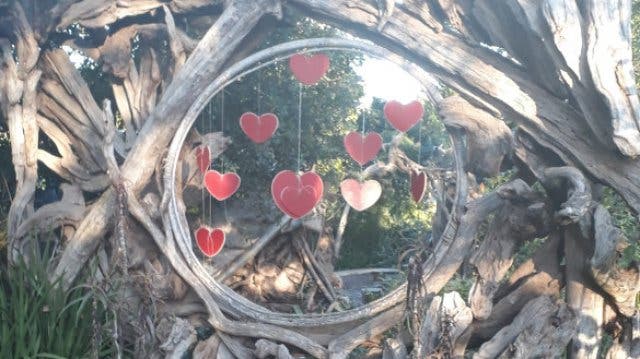 Selten wurden wir auf unserer Reise auf der Garden Route so warm und herzlich empfangen. Beim Betreten des Geländes wandert man an einer wundervollen Holzskulptur vorbei. Sie besteht aus alten, knorrigen Ästen. Diese rahmen kreisförmig rote Herzen, die von oben befestigt, frei in der Luft hängen. Dieses Kunstwerk spiegelt die Freundlichkeit wieder, die uns während unseres Aufenthalts entgegen gebracht wurde. Es steht aber auch für die Kreativität, die nahezu überall im Hostel zu finden ist, etwa in bunt bemalten Tischen, einer Theke, die um einen Baum gebaut wurde oder einer großen weißen Blüten-Lampe. Mit viel Liebe zum Detail wurde hier ein Ort zum Seele baumeln und Natur erleben geschaffen. Die Unterkunft selbst wird von einer Familie geführt, um sie herum helfen rund ein Dutzend Freiwillige. Sie bereichern den Ort mit ihrem Können und Wissen. Sie sind die fleißigen Wichtel des Hostels. Einer von ihnen ist fürs Einchecken verantwortlich. Im Anschluss werden wir von seinem Kollegen durch das riesige Gelände geführt. Hier gibt es viel zu entdecken, etwa eine Bank, die zum Sonnenaufgang ausgerichtet ist. Sie steht inmitten eines romantisch geflochtenen Holzbogens. Auch für den gelungenen Sonnenuntergang ist gesorgt: Dafür klettert man auf ein Baumhaus. Oben angekommen hat man den perfekten Ausblick in Richtung Himmel mit all seinen magischen Farben, die es so nur in Südafrika gibt: Gelb, Rot, Orange und Blau. Das ganze Spektakel schaut man sich aus einer Hängematte an, die hier in luftiger Höhe auf Profi-Chiller wartet.