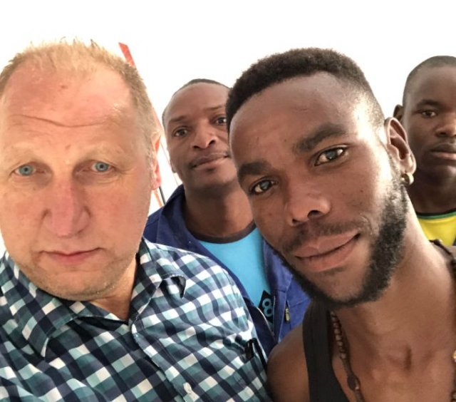 Die Khayelitsha-Kinder posieren mit Reporter Andy Hobi